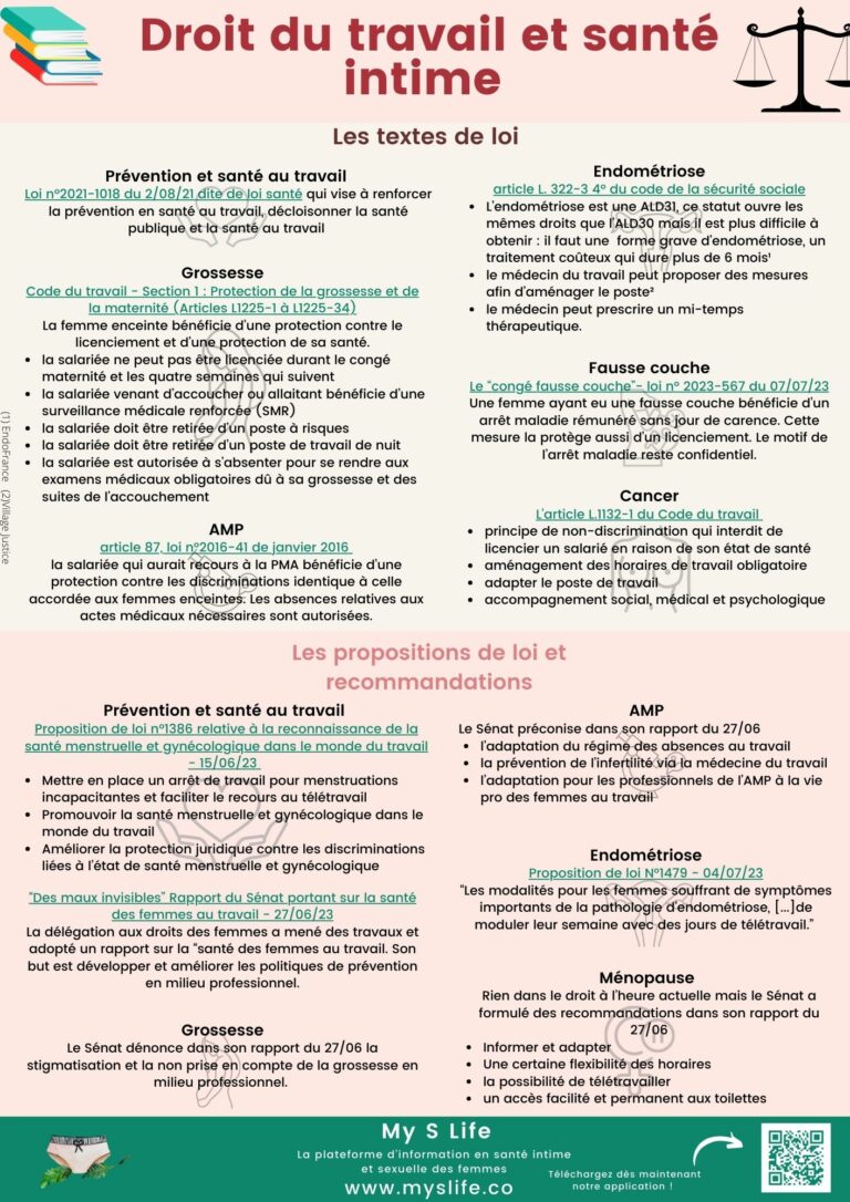 Où en est le droit du travail français en matière de santé des femmes ? Retrouvez notre infographie à imprimer pour ne rien oublier.